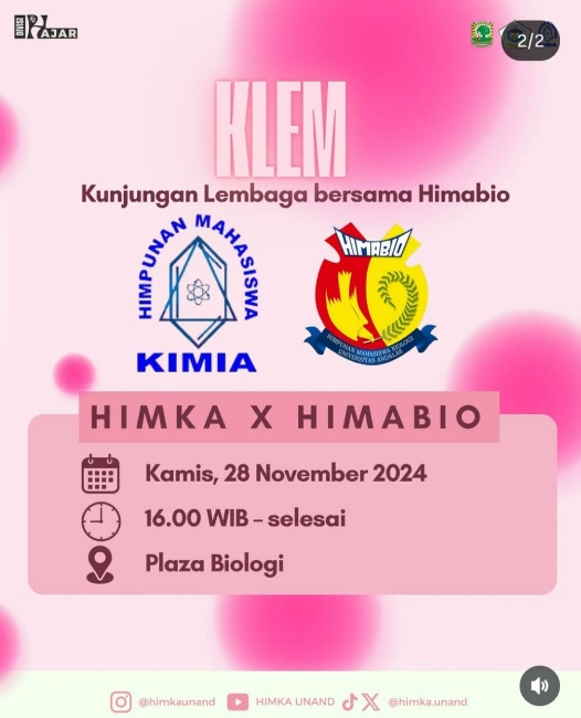 - Kunjungan ke Himpunan Mahasiswa Biologi (Himabio) Unand pada Kamis, 28 November 2024 di Plaza Biologi Universitas Andalas