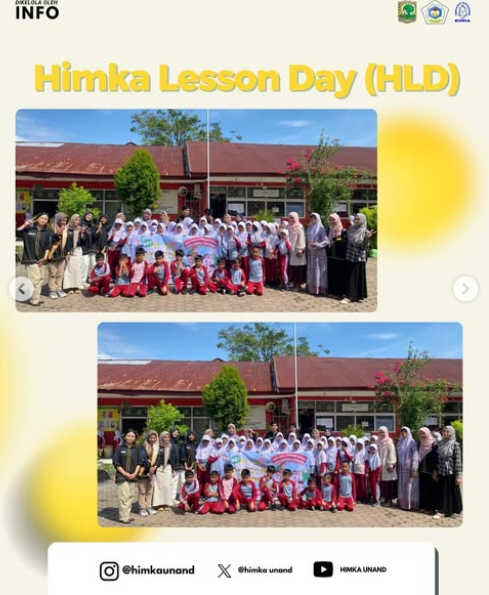 Himka Lesson Day (HLD) merupakan program kerja Divisi Sosial yang berfokus pada kegiatan edukatif dan interaktif bersama siswa-siswi sekolah dasar di sekitar Kota Padang. Kegiatan ini bertujuan untuk berbagi ilmu pengetahuan melalui metode belajar dan mengajar sambil bermain.